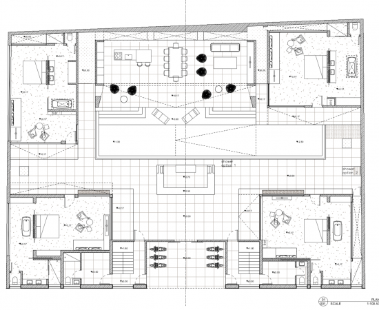 El conjunto se plantea como Villas privadas en dónde cada habitación forma una unidad en si misma y las zonas comunes forman un pieza independiente más del proyecto.